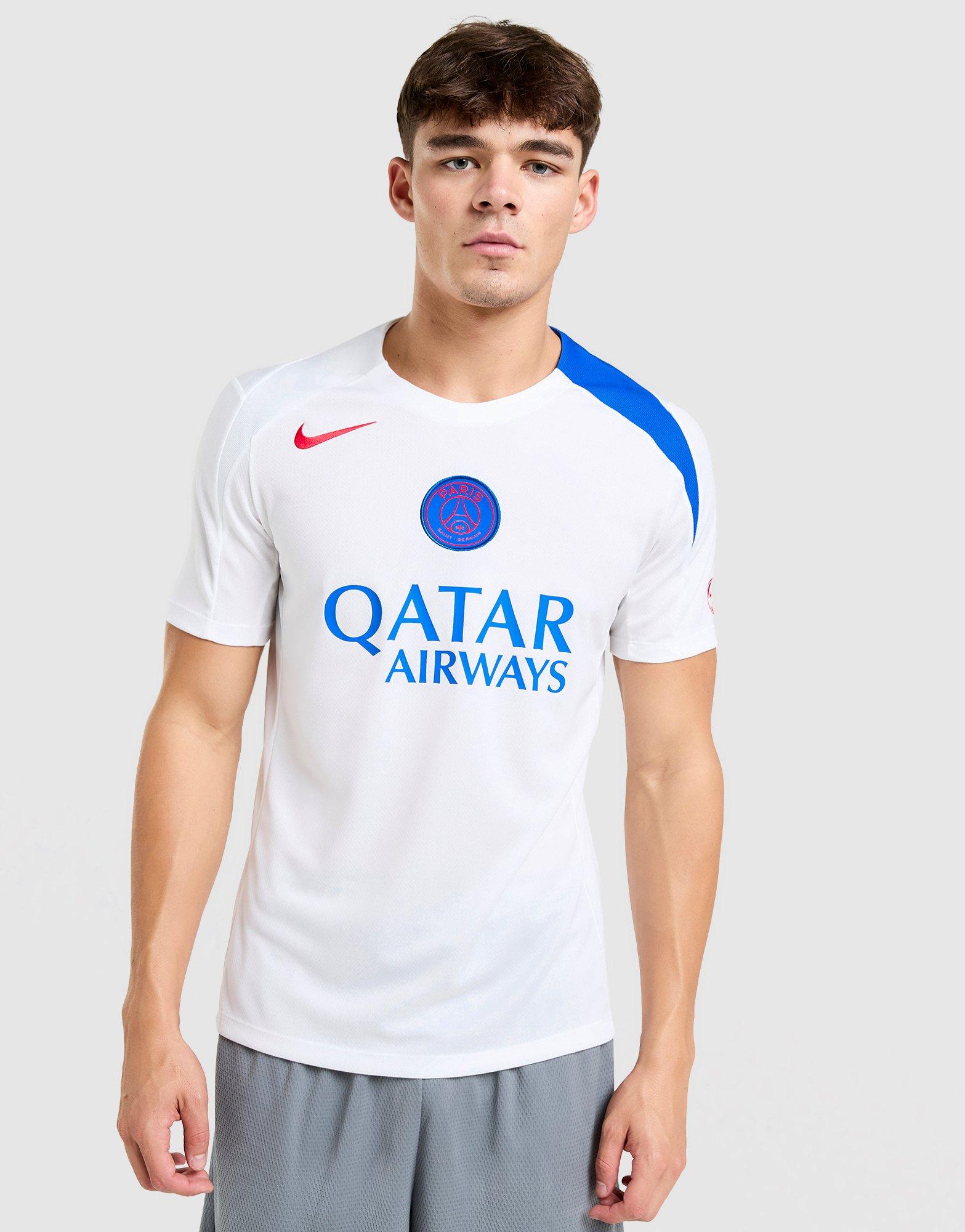 Back your team in classic style. This men's Paris Saint Germain Strike T-Shirt from Nike brings OG Total 90 energy. Light and breathable, it's equipped with Dri-FIT tech to remove sweat. The fit is slim for a streamlined feel. With Hyper Royal and Global Red details, it's finished with the PSG crest and Swoosh to the chest. Machine washable | Our model is 6'2" with a 37" chest and wears a size M.