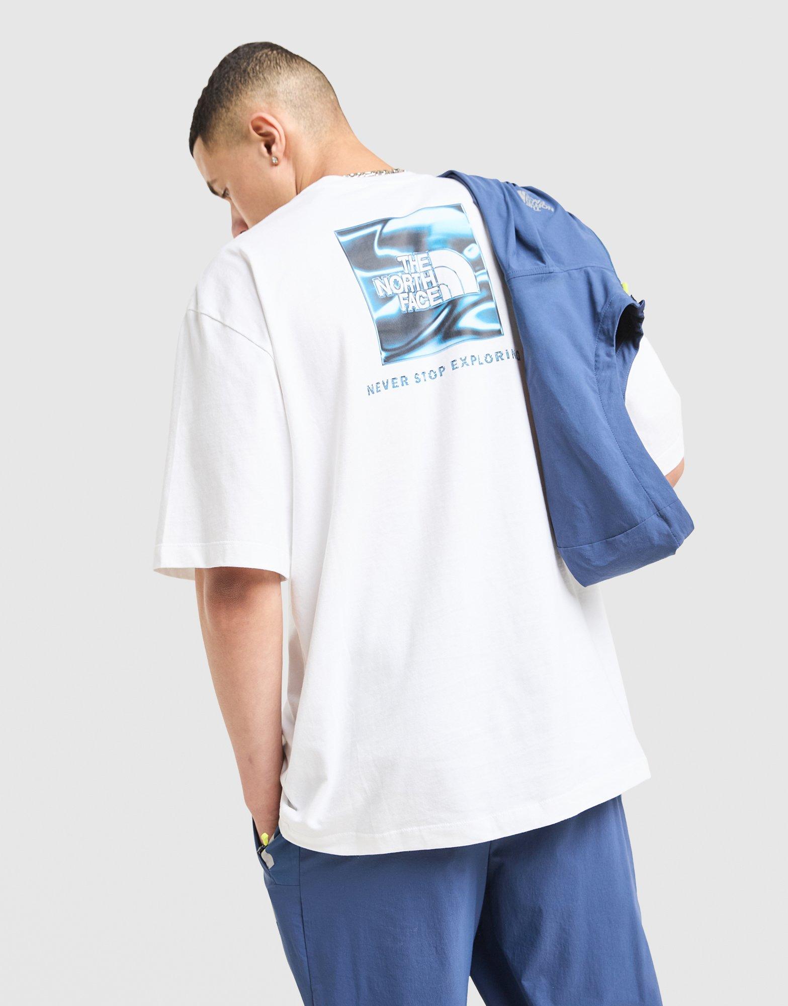 On chill days, this men's Liquid Box Logo T-Shirt from The North Face is a staple. Only at JD, it's cut from soft cotton fabric. It lands baggy for a roomy feel, with a crew neckline and short sleeves for a classic look. Finished with a Half Dome logo at the chest and a graphic print on the back. Machine washable. | Our model is 6'0" with 36" chest and wears a size M.