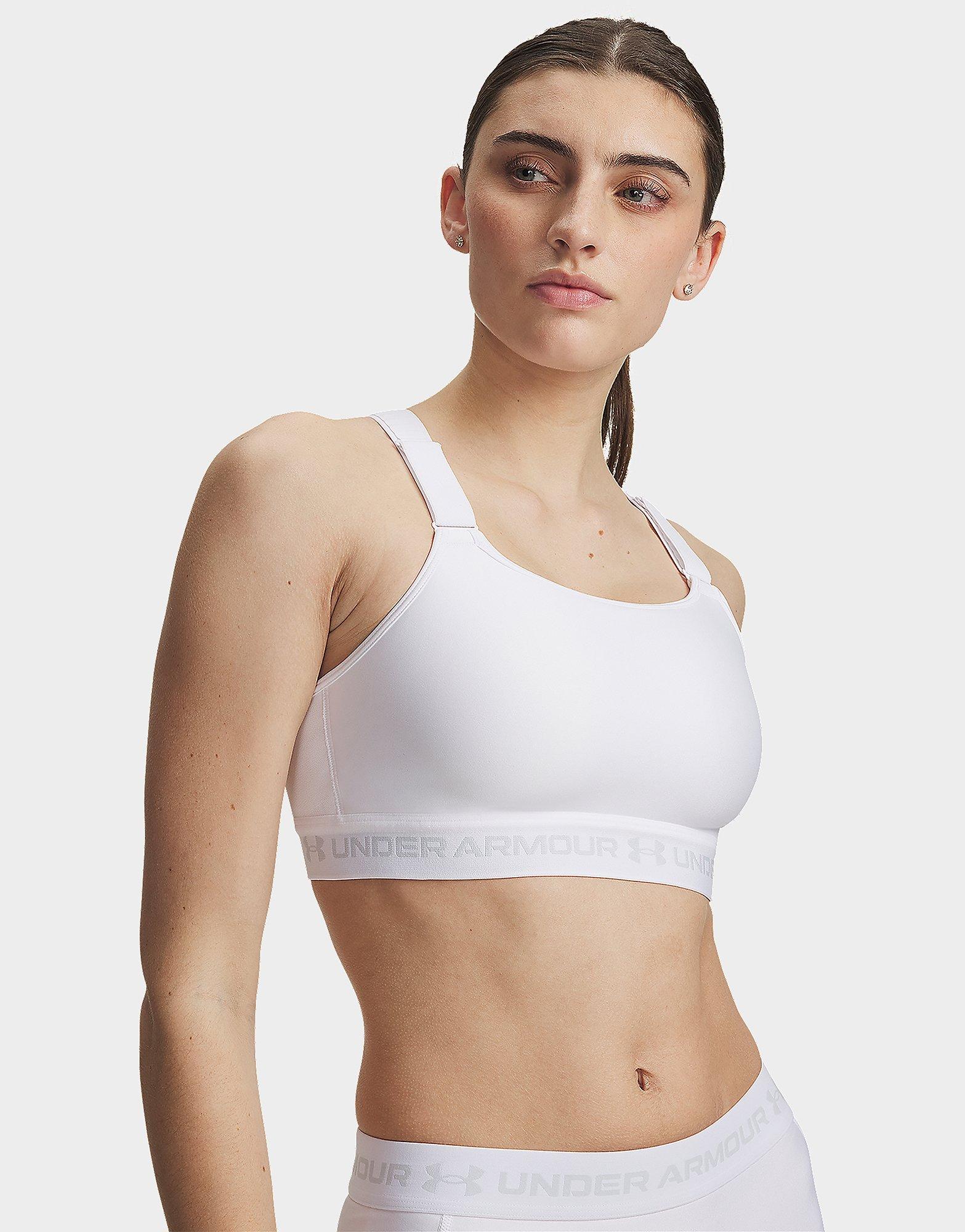 No doubling up. No pinching. No slipping. Just a held-in feel, smooth, adjustable straps you slide and secure with a hook, and the sweat-wicking power of HeatGear. It's a compression bra you can actually go hard in.